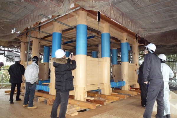 皇三重ノ塔 「日本一のおかき処」で有名な、播磨屋本店が豊の岡工場の敷地内に建立される皇(スメラギ)三重ノ塔。 兵庫県太子町に現存する室町後期の斑鳩寺三重塔をモデルにした皇三重ノ塔は、平成24年から設計に取りかかり、26年春に着工、現在、二重まで組み上がりました。 皇三重ノ塔には、日本で初めてのことがあります。 文化財でない新築の塔は、当然のことながら建築基準法を守らなければなりませんので、これまでに建立された文化財でない塔には、塔体が金属によって補強がされていると思います。文化財でも補強されているものがあるくらいです。 しかしこの塔には、芯柱の相輪部分と4隅の柱脚にはめた割れ止めのタガ以外、金属の補強は一切なく、伝統構法そのものです。もちろん柱脚は石の上に乗っているだけの石場建てです。 時刻歴応答解析による大臣認定で建築確認を申請するまで、約2年を費やしました。 詳しくは、こちらをご覧ください。 第19回木の建築賞選考委員特別賞を受賞しました。 ![]() ![]() ![]() ![]() ![]() ![]() ![]() ![]() ![]() ![]() ![]() ![]() ![]() |